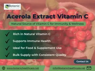 Visit the website https://www.botanichealthcare.net/acerola-extract-vitamin-c/ to explore detailed product information and business inquiries.
