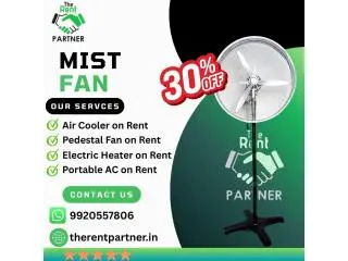 Mist Fan on Rent in India offers affordable outdoor cooling solutions with Mist Fan on Rent, Pedestal Fan on Rent, Portable AC on Rent, Air Cooler on Rent, and Electric Heater Rental Service for events, warehouses, construction sites, and spaces.
