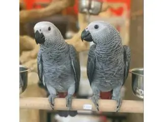 Beautiful African Grey parrots available for adoption. These parrots are confident, socially engaged, and highly intelligent with remarkable talking abilities and strong curiosity. They enjoy mental stimulation, learning tricks, mimicking sounds, and spending quality time with their human family.