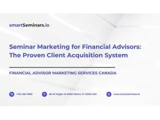 Financial Advisor Marketing Services Canada: Discover how seminar marketing helps advisors attract high-quality clients through education-based strategies. Learn how workshops and webinars build trust, improve engagement, and generate qualified leads. Turn prospects into long-term clients with proven systems. Contact Smart Seminars today to grow your client base and increase conversions.