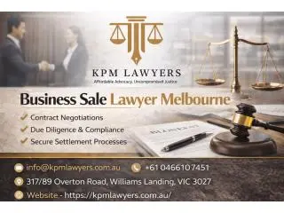 The issue of legal advice in business acquisition and sale is critical in the current competitive business environment.KPM Lawyers in Melbourne offers strategic support, bilateral understanding, and problem solutions that are risk-oriented to guard your business interests at all levels of a transaction.Hire an experienced business sale lawyer Melbourne attorneys rely on to do proper due diligence and negotiations.Our team collaborates effectively with clients to make sure that there is compliance, transparency, and a seamless transfer of ownership.Considered as one of the best lawyers Melbourne, call us today to make an appointment and proceed with us at KPM Lawyers.