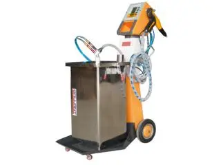 Automatic powder coating gun delivers consistent electrostatic powder application for high-volume industrial finishing, ensuring uniform, efficient, and durable surface coatings.
