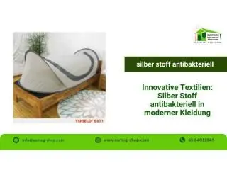 Nachhaltig & hygienisch: Silber Stoff antibakteriell im EinsatzOther Services - Osthofen (Rheinland-Pfalz) - March 27, 2026 Check with sellerHygienische Innovation für Ihren Alltag: Silberstoff Antibakterieller kombiniert effektiven Schutz vor Keimen mit hohem Tragekomfort und nachhaltigen Materialien. Die natürlichen Eigenschaften von Silber unterstützen ein frisches, saub...