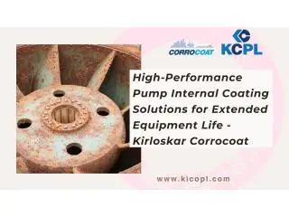 When it comes to Pump Internal Coating, Kirloskar Corrocoat is widely trusted for its technical expertise and proven coating solutions. The company specializes in high-quality internal coating systems designed to resist corrosion, erosion, and chemical attack under extreme operating conditions. Their Pump Internal Coating solutions help improve flow efficiency, enhance durability, and extend the service life of critical pumping equipment. With a strong focus on quality control, industry standards, and customized solutions, Kirloskar Corrocoat has built a reputation for delivering dependable protection for industrial pumps across diverse applications.